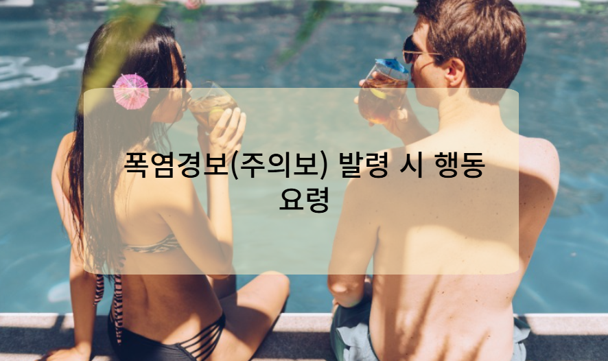 발효 시 대응 충분한 수분 섭취, 실외 활동 최소화, 냉방 활용 외출 자제, 응급 대비 철저, 폭염 취약계층 집중 보호