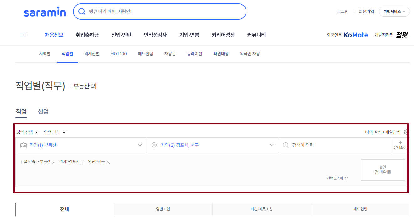 ‘채용정보’ 메뉴에서 원하는 기업이나 직무의 공고를 검색합니다. 필터 기능을 활용하면 지역, 연봉, 직종 등 조건에 맞는 공고를 찾을 수 있습니다. 적합한 공고를 선택한 후 ‘즉시 지원’ 또는 ‘온라인 지원’ 버튼을 클릭하여 입사지원을 완료합니다.
