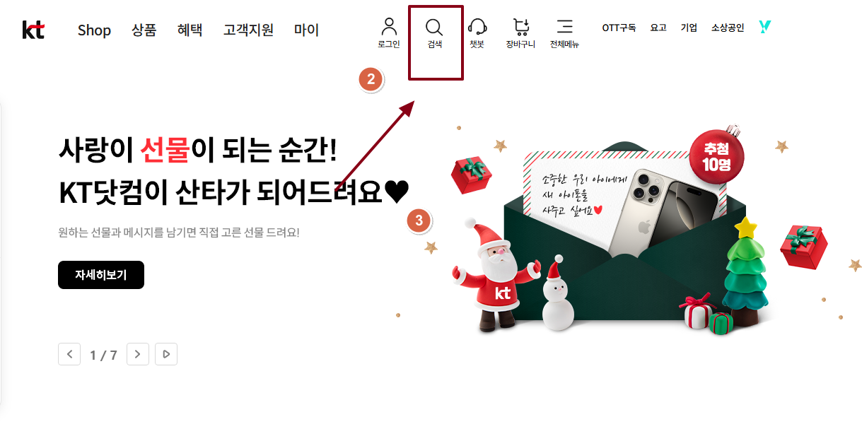 ① KT 공식 홈페이지(www.kt.com)에 접속합니다.